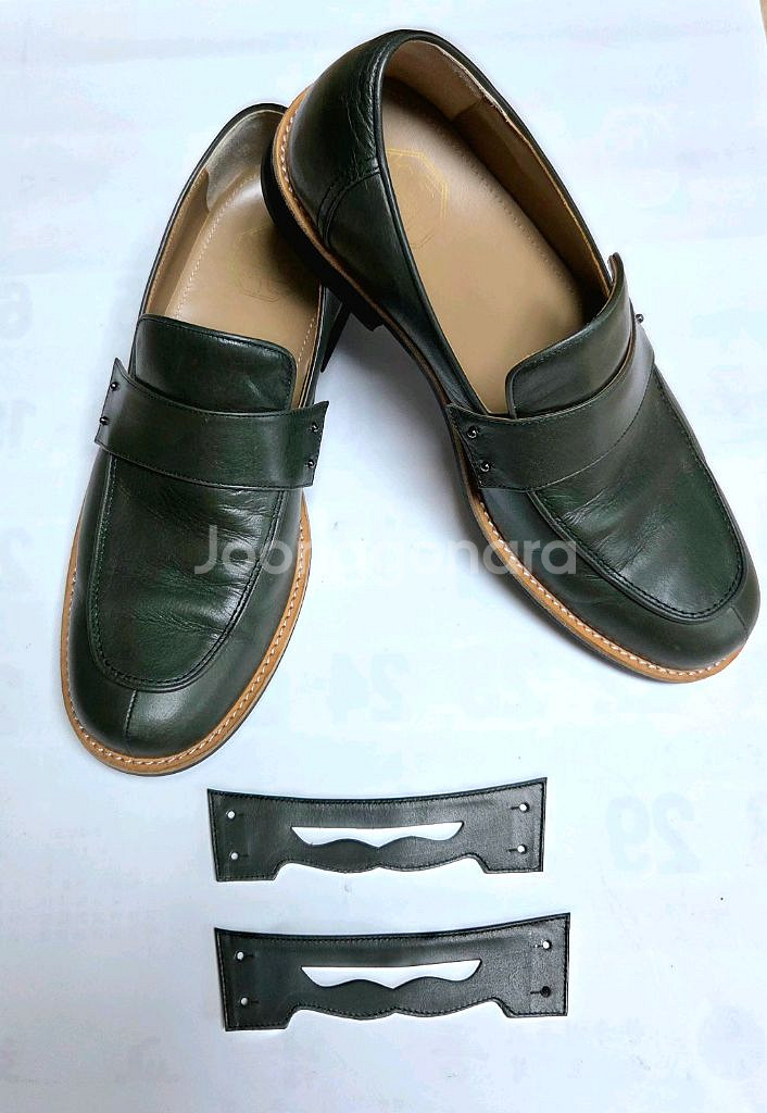 겸손몰에서 주문생산 구입한 수제화로 독보적인 색상과 스트랩 교체로 날마다다르게(직선형, 무늬형 스트랩)신을수 있는 남성용 구두 265사이즈입니다. 색상은 세가지로 청매실 녹색은 버팔로 카프(물소 송아지)이태리 가죽이고,흙내음 갈색은 기계가 아닌 손으로 코팅한 국내산 버니쉬 가죽입니다. 동틀녁 감색은 약간 푸른빛이 도는 먹색으로 탄탄한 질감과 고급스러운 광택이 특징인 이태리 플레인 소가죽입니다.깔끔하고 고급스러운 디자인이며,상태 양호하니 비즈니스나 정장 착용 시 착용하기 좋을 것 같아요. 구매당시 구두별로22만원에 구입했지만,개인사정상 한 구두당 12만원씩 판매합니다. ※상품 하나만도 구매가능합니다.