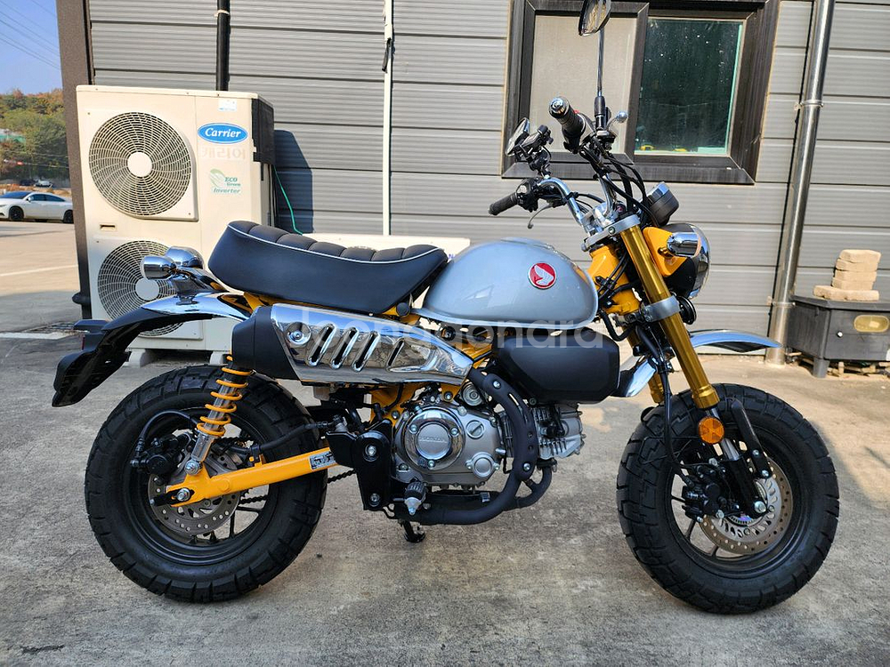 - 25년식 혼다 몽키 125 ABS 옐로 색상 판매합니다. - 키로수 2050 km 입니다. - ABS 모델이며 기어단수는 5단까지 있습니다. - 낮은 시트고와 가벼운 무게로 남녀노소 입문용으로도 좋은 디자인도 예쁜 혼다 몽키 !! - 이 매물은 옵션도 많은 바이크입니다. 옵션을 따로 하실분들은 이 매물을 적극 추천드립니다. - 클래식하게 옵션 많이 돼있는 바이크 혼다 몽키 125 새로운 오너를 기다립니다 . ---- 옵션내역 ---- - 무선충전 휴대폰거치대 - 로우시트킷 - 스텐드 클립 - 정품키 2개 및 책자 보유중입니다.