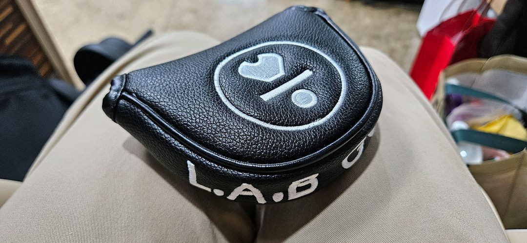 LA.B골프 mezz.1 퍼터용 헤드커버예요. 가죽느낌의 블랙에 자석 소재로 고급스럽고 실용적이며, 새제품입니다