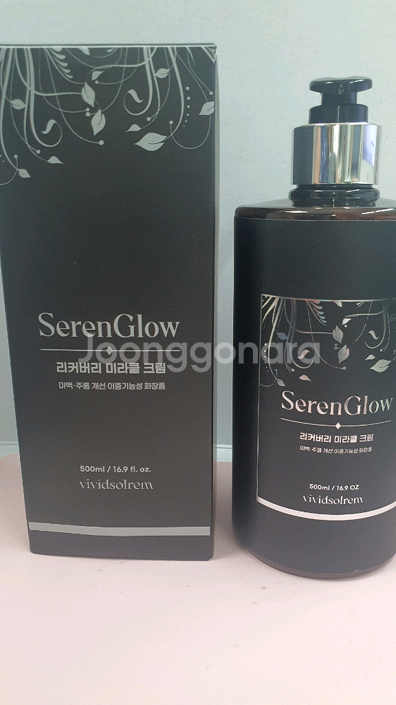 리커버리 마사지 크림 500ml입니다. 박스와 함께 깔끔한 상태로 보관되어 있어요. 피부 회복과 마사지용으로 좋은 제품이에요.