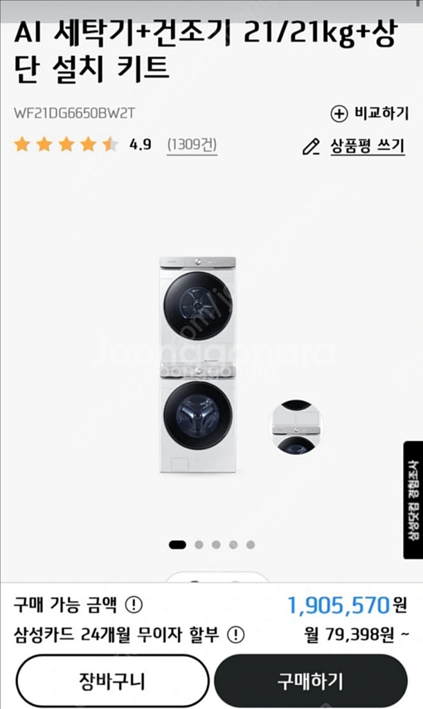 모델명 WF21DG6650BW+DV21DG8600BW 세탁기 21키로 건조기 21키로 배송 전 상품입니다