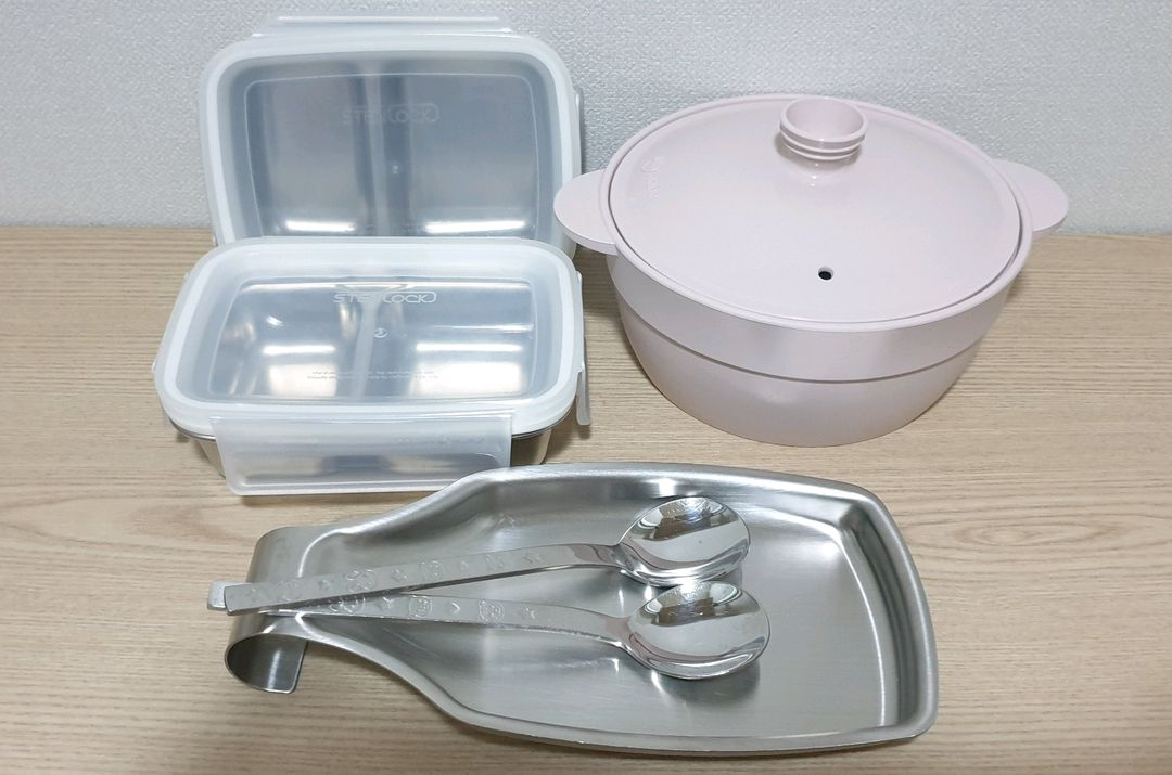 실리만 실리콘 찜기 스텐락 나눔용기 2개 조리도구받침대 어린이 숟가락2 1. 실리만 실리콘 찜기 700ml 한두번 사용해서 상태좋아요. 4~5인 계란찜, 1인용 야채, 만두 찌기 좋은 크기 2. 스텐락 나눔 밀폐용기 2개 총용량 300ml 내부 사이즈 7 × 9 × 깊이 3.5 5 × 9 × 깊이 3.5 마른 반찬이나 양념장 종지로도 사용할 수 있어요. 크기 꼭 확인해주세요. 사용감 별로 상태 좋아요. 3. 스텐 조리도구 받침 거치대 대략 길이 20cm 4.어린이 숟가락2개 총길이 16~17cm 사용감있고 필요하시면 함께 드려요. 교환 환불 불가