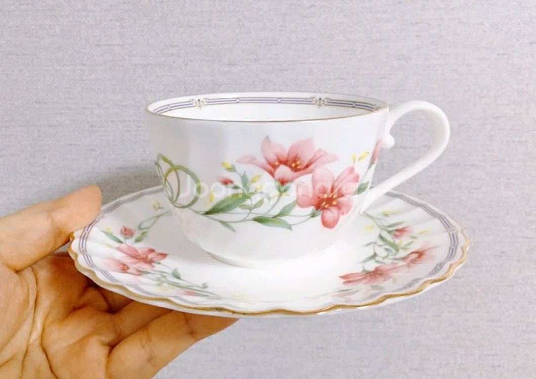 1조 가격이예요.☺️ 일본 빈티지 니코 웨이브 플라워 패턴 찻잔 겸 커피잔 입니다. 풍성한 꽃 패턴이 화사하고 예뻐요☺️ 원비닐 그대로 보관했던 미사용품이지만 세월상 부분적인 약한 금장 소실이 있어요. 사진 참고 부탁드려요. 그외 다른 사용감이나 큰 하자 없이 깨끗하고 상태 좋습니다. 빈티지 잔 특성 충분히 고려하신 후 챗 부탁드립니다. 구로역~신도림역 근처 직거래 가능하고 택배 시 편의점 반값택배 +2,500원 / 일반택배 +4,000원 해주세요.☺️