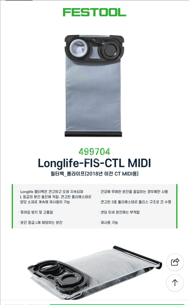 개인정보(거래정보)를 주고받는 행위는 사기에 노출될 수 있으므로 즉시 중고나라로 신고해 주세요페스툴 정품 롱라이프 FIS CTL MIDI 필터백이에요. 목공이나 청소 작업용으로 사용하는 제품이고 최저가보다 낮게 올렸습니다 한개 판매 완료 되었습니다 박스 손상된 제품 하나만 남았습니다 사진 참고해 주세요 필터백은 개봉하지 않은 새상품 입니다