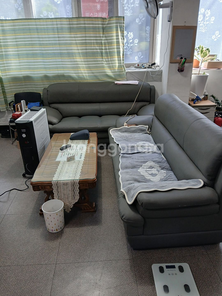 원목 카페테리아 테이블이에요. 베이지 커버가 있어서 깔끔하고 사용감은 있지만 상태 양호합니다. 카페나 사무실에서 사용하기 좋을 것 같아요.