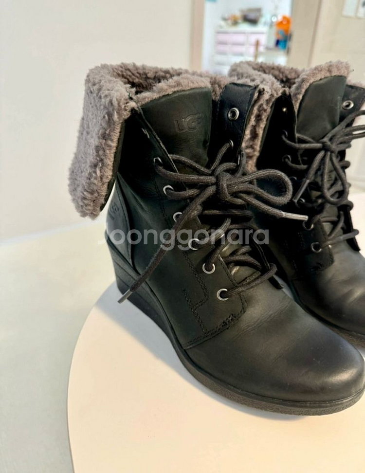 당시 30만원정도 주고 엄마사드렸는데 사이즈미스로 2-3번신으시고 보관만하셨어요 . 호주꺼아니고 미국 어그 정품입니다. 보시다시피 굽까임 없고 컨디션좋아요. 안에 털도 숨죽은거없이 폭신폭신합니다 워터프루프로 밖은 가죽재질이라 눈와도 방수되고 고급스럽습니다. 굽은 6.5cm인데 통굽이라 발불편한거 하나없어요. 겨울물건들을 처분중이라 싸게 내놓아요 원래 싸이즈는 usa7싸이즈인데 (240) 살짝 작게나와서 235정도 신는분이 데려가시면 잘 신으실것같아요 . . 교환, 환불X -cu 택배가능