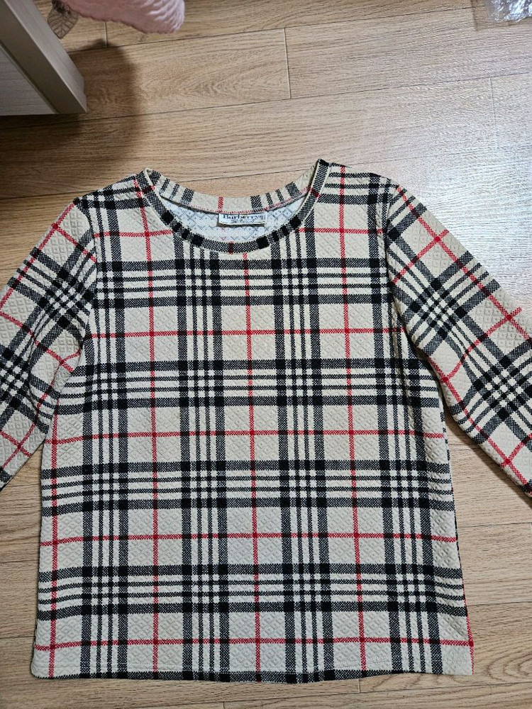 체크 패턴 니트 티셔츠예요. 클래식한 체크 디자인이 정말 예쁘고 상태도 깔끔합니다. 고급스러운 소재감과 편안한 착용감이 좋아요. 창원입니다