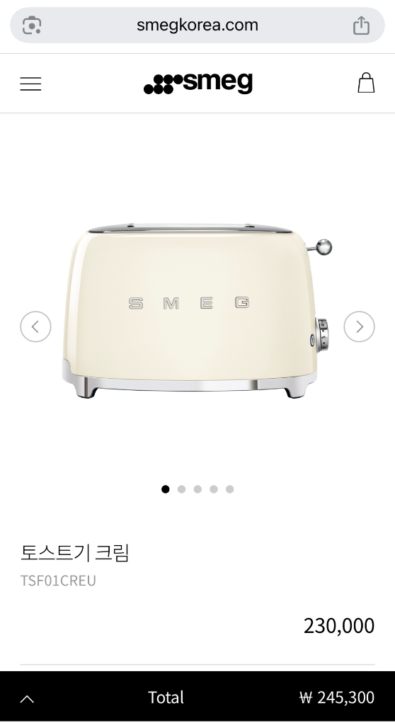 스메그 토스터기 베스트셀러 크림색 모델 TSF01CREU입니다 - 어떤 공간에도 잘 어울리는 스타일리시한 디자인이 특징입니다 - 이탈리아 장인정신이 느껴지는 제품이에요 - 직구 아닌 스메그 코리아 공식몰에서 구매했기때문에 제품 등록 및 정식 AS가능해요 - 박스 채 새 상품입니다💝 - 백화점에서 실물보신분은 아시겠지만 굉장히 예쁩니다 - 15300원 상당의 실리콘커버도 있습니다