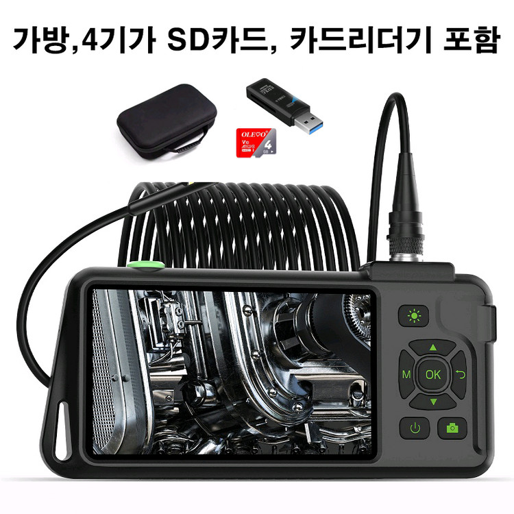 이 제품은 하수구, 싱크대, 자동차 정비, 변기 수리 같은 곳을 점검할 때 사용하는 산업용 내시경입니다. 카메라는 **총 3개(트리플 렌즈)**가 달려 있습니다. 트리플 렌즈란? (최상위) 정면 카메라 1개, 양쪽 측면 카메라 2개가 있어 버튼만 눌러도 정면과 측면 화면을 바꿔가며 확인할 수 있습니다. 그래서 구석진 곳이나 배관 안쪽을 볼 때 아주 편리합니다. 화질도 양호한 편입니다. (마지믹 사진 확인) 방수 등급도 IP68, IP67보다 더 좋음. 케이블 길이는 10미터로, 하수구나 배관 깊숙한 곳까지 확인이 가능합니다. 또한 사진과 동영상 촬영이 가능하며, 촬영한 영상이나 사진은 SD카드를 본체에서 빼서 카드리더기에 꽂은 뒤, 그 카드리더기를 컴퓨터 USB에 연결하면 컴퓨터 화면에서 바로 볼 수 있습니다. 구성품으로 가방, SD카드, 카드리더기가 포함되어 있으며, 가방이 함께 있어 보관과 관리가 편리합니다. -구매/문의 안내- 문의 시간: 오전 9시~10시 출고: 월~금 오후 3시 이전 결제 시 당일 출고 배송: 1~3일 소요 유의사항: 가격 흥정·반품은 어려우니, 신중히 주문해주세요.