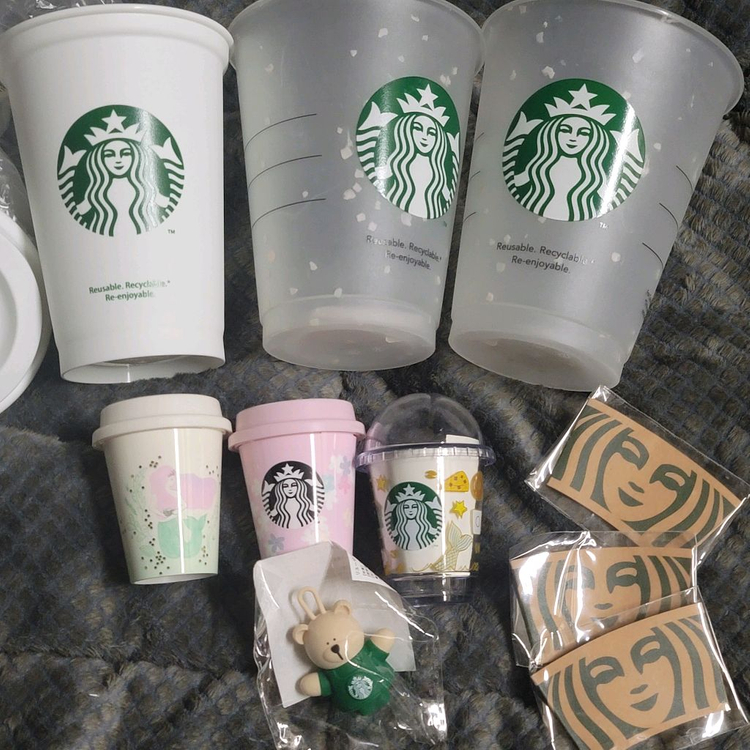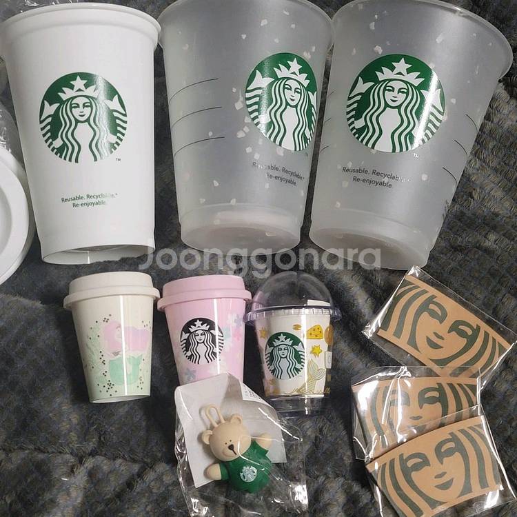 사진에 있는 리유저블컵3개 미니컵 3개 스토퍼 일괄로만 팝니다. 흰색 리유저블 핫컵은 톨 사이즈, 나머지 두개는 아이스컵이고 그란데 사이즈예요. 리드(뚜껑)도 전부 있습니다. (아이스컵은 돔리드예요.) 미니컵은 추가구성없이 사진에 보이는 컵+슬리브만 있어요. cu알뜰택배는 무료배송해드립니다. ✅️ 중고나라 안심결제 이용하면 확인이 필요하다고 정산 지연시키는 경우가 많아서 안심결제로 거래는 어렵습니다. ✅️ 꼭 안심결제로 결제하셔야 할 경우에는 문의 먼저주세요. ✅️ 안심결제 거래 시에는 일반택배로만 거래 가능합니다.