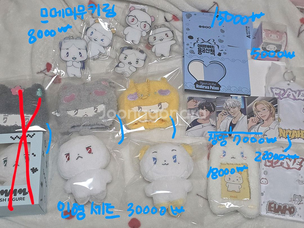 가격 사진에 다 기재해 놨습니다 응원봉 키링은 2만6000원입니다 다 밖에 내놓지 않은 집에서만 보관한 상품들입니다