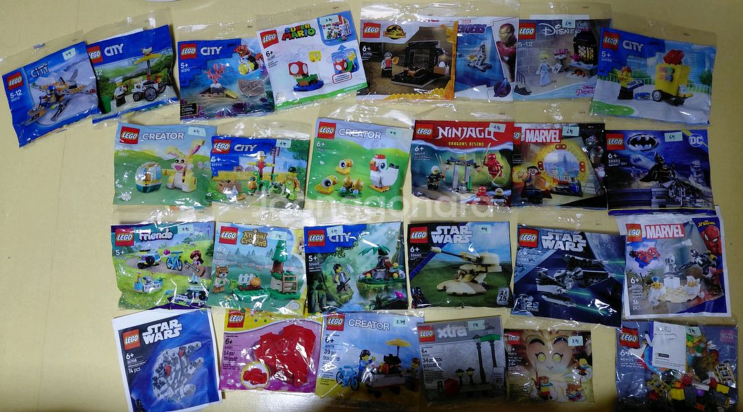 1. 30310 북극 정찰대 / 4,000원 2. 30356 핫도그 판매 카트 / 12,000원 3. 30370 해양 다이버 / 6,000원 4. 30385 슈퍼마리오 슈퍼버섯 서프라이즈 / 3,000원 5. 30390 공룡 마켓 / 6,000원 6. 30452 아이언맨과 더미 / 9,000원 7. 30551 신데렐라의 주방 / 6,000원 8. 30569 시티 가판대 / 7,000원 9. 30583 이스터 버니 / 4,000원 10. 30590 정원과 허수아비 / 5,000원 11. 30643 이스터 치킨 / 4,000원 12. 30650 카이와 랩톤의 사원 전투 / 4,000원 13. 30652 닥터 스트레인지의 차원이동 포털 / 6,000원 14. 30653 배트맨 1992 / 6,000원 15. 30658 이동식 음악 트레일러 / 2,000원 16. 30662 메이첼의 호박밭 / 5,000원 17. 30665 아기 고릴라와의 만남 / 4,000원 18. 30680 AAT / 4,000원 19. 30685 TIE 인터셉터 / 5,000원 20. 30707 베놈 박물관 강도 사건 / 6,000원 21. 30708 밀레니엄팔콘 / 6,000원 22. 40051 발렌타인데이 선물상자 / 14,000원 23. 40078 핫도그카트 / 23,000원 24. 40312 가로등 / 7,000원 25. 40474 나만의 몽키킹 만들기 / 국내미발매/ 8,000 원 전부 미개봉 새제품입니다. 구입후 반품, 교환, 환불 불가하니 신중히 거래 해주시기 바랍니다.