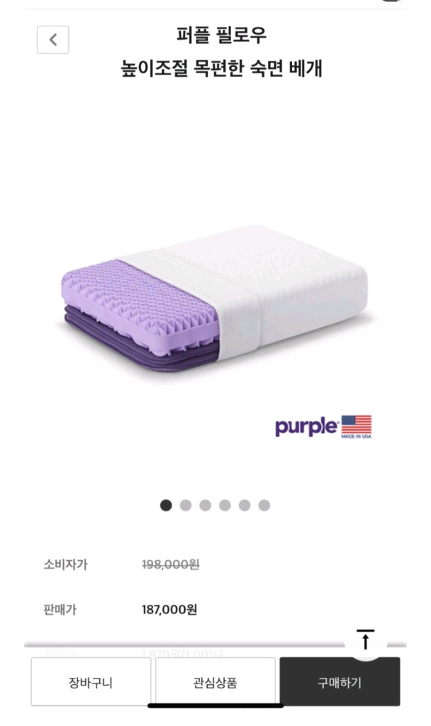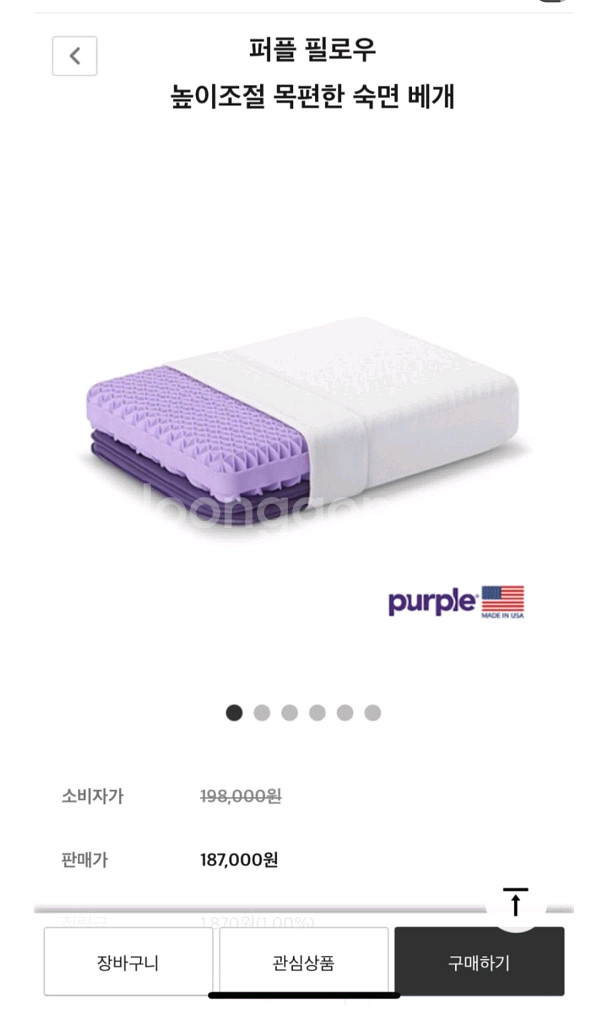 미국 purple사에서 만든 고급베개입니다. 정가 18만원에구매하였는데 몇주써보고 저랑 맞지않아 2년방치후 판매하려고합니다. (2년간 옷장에보관되엇다보니 tpu소재색깔이 조금 누래졌지만 영구사용가능베개이기에 탄력등 전혀 문제없습니다) 높이조절패드포함입니다. 베개는 좋은 제품이맞으나 개인차에따라 맞지않을 수 있으니 신중하게 구매하세요!