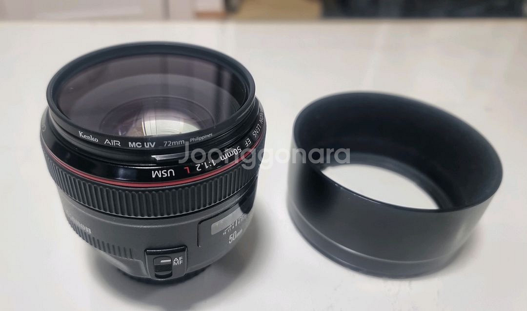 개인정보(거래정보)를 주고받는 행위는 사기에 노출될 수 있으므로 즉시 중고나라로 신고해 주세요캐논의 인기 50mm F1.2 단렌즈로 유명한 렌즈예요. 겐코 필터 끼워져있고 렌즈 후드도 함께 포함되어 있어요,완전A급으로 깨끗한 상태입니다.박스는 없고 융천에 싸서 드려요 3호선 삼송역으로 나갈수 있어요