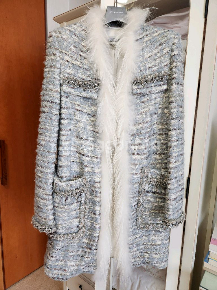 오브제 트위드 롱 자켓,이탈리아 원단 고급스러운 트위드 소재의 롱 자켓입니다. 화이트 퍼 트리밍(밍크, 너구리틜)이 포인트로 되어있어서 더욱 우아하고 세련된 느낌입니다. 특별한 날이나 데이트룩으로 완벽합니다. ! 사진이 좀 연하게 나오는데 그린 색이 실제로는 좀 더 진해서 정말 아름답습니다. 구매 후 입지 않고 보관만 해둬서 새 상품 컨디션 입니다. 사이즈 : 85-96-160 (55) 가슴단면 : 44. cm. 길이 : 92 cm (측정하는 방법에 따라 차이가 있을 수 있습니다.) 반품은 정중히 거절합니다.