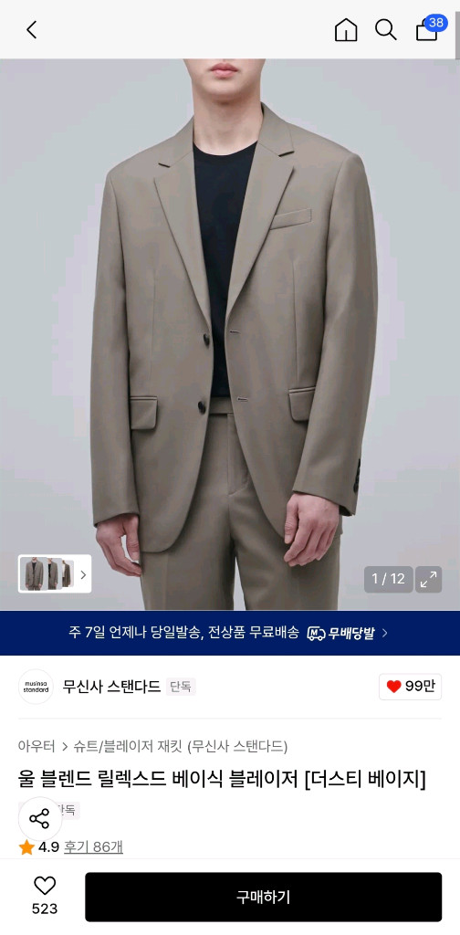 무탠다드 울블렌드 릴렉스드 블레이저 XL & 울블렌드 와이드 슬랙스 32