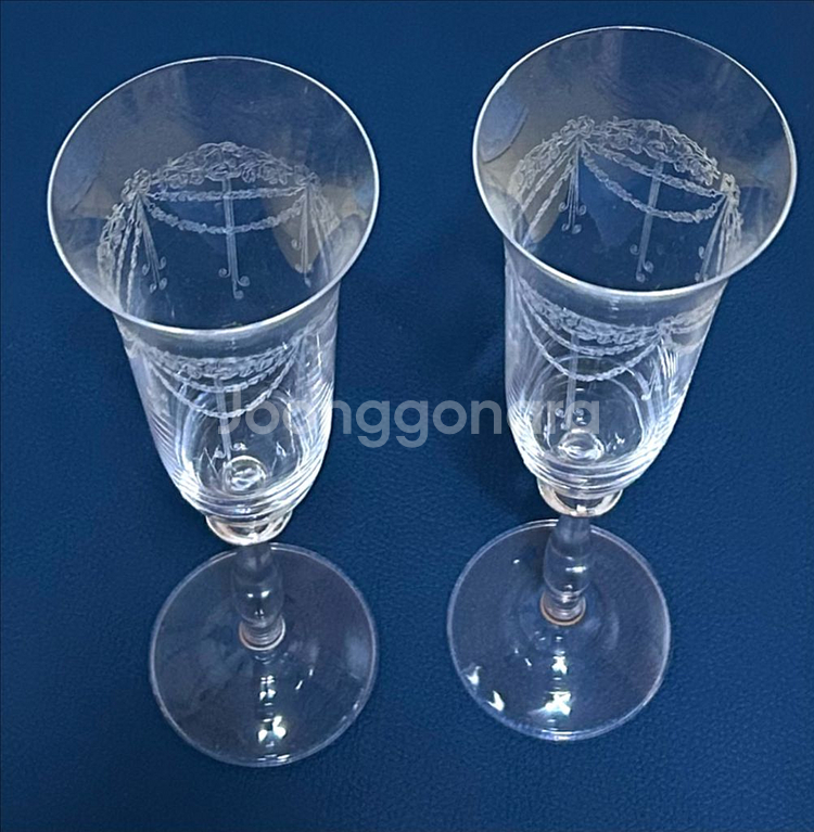 1900년대 초중반, 크리스털 공예의 중심지였던 체코 보헤미아 지역에서 제작된 빈티지 플루트 잔입니다. 잔 상단부를 장식하는 화려한 화환(Garland)과 리본장식, 그리고 길게 늘어진 술(tassel)은 보헤미아 장인들의 뛰어난 예술성과 애칭 기술의 뛰어남을 보여줍니다~💕 탄산을 오래 보존해주는 플루트 형태이며, 크리스탈은 건배 시 맑고 아름다운 울림을 선사할 것입니다!^^ 컨디션 좋으나 잔 하나에 사진에서 보이는 작은 스크래치가 있어 가격 반영합니다. 크게 눈에 띄지는 않아요~ 2개 세트가예요! <사이즈> 잔 입구 지름: 6.8cm 높이 25cm made in Czechia ➡️ 다른 물건도 함께 올려놓았으니 둘러보세요^^