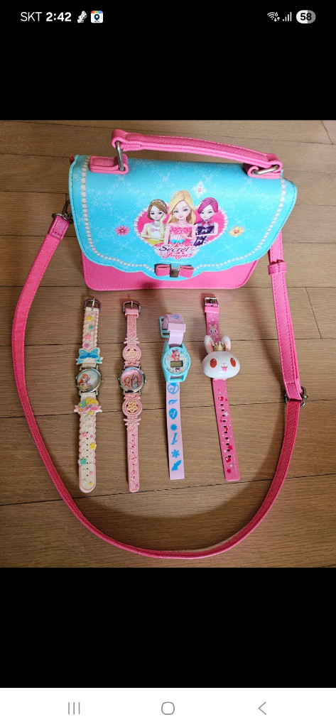 캐릭터 시크릿 쥬쥬 가방외 시크릿 쥬쥬 디지털 시계 2..함께 있는 세트예요. 아이들이 좋아할 만한 귀여운 디자인입니다 캐릭터 굿즈 좋아하시는 분께 추천드려요! 전체적으로 깨끗한 상태입니다 구매후 교환환불은 불가합니다.
