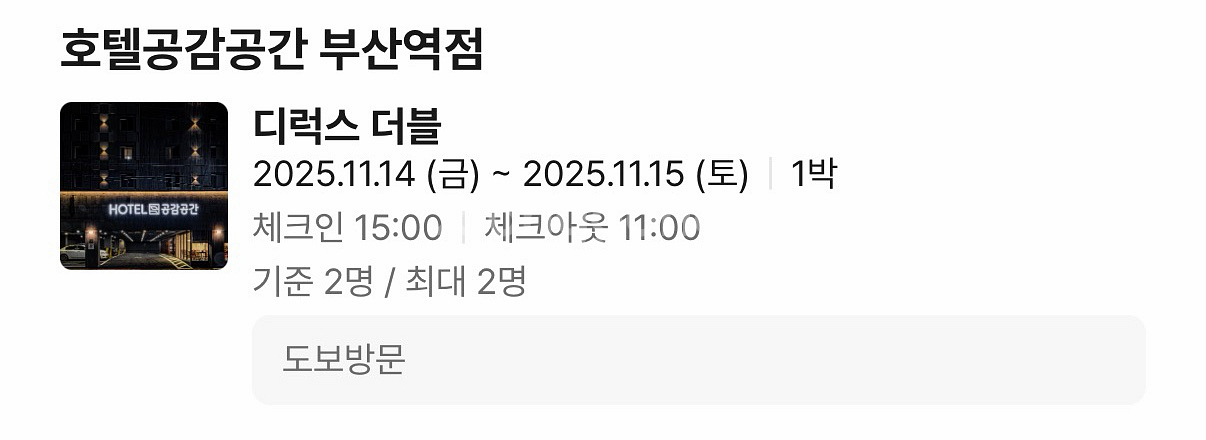 2025년 11월 14일부터 15일, 1박 디럭스 더블룸 숙박권입니다. 🌟금토 황금 기간입니다🌟 기준인원 2명, 최대인원 2명인 룸입니다. 호텔공감공간 부산역점이고, 부산역에서 도보로 방문 가능합니다. 광안리 불꽃축제 기간이라 이미 부산역 근처 숙소는 다 매진이더라구요😭 이 기회에 싸게 방 잡으시면 좋을 거 같습니다~ 제가 자주 방문한 호텔인데, 급한 사정으로 부산을 못 가게 돼서 판매합니다. 무인이고, 시설 정말 깔끔하게 잘 돼 있습니다~