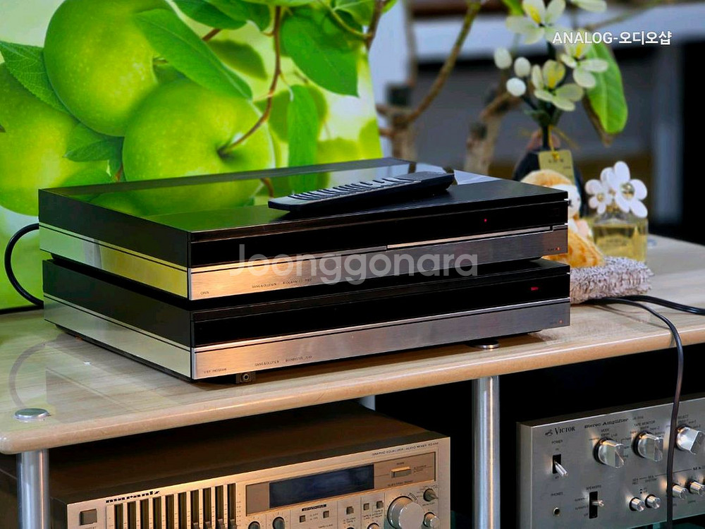 .Beomaster 7000은 1990년대 초, Bang & Olufsen이 자사의 하이엔드 라인업으로 선보인 스테레오 리시버앰프입니다. (전원 220V) .출력은 110W×2ch(8Ω)로 충분한 구동력을 갖추고 있으며, 소리는 B&O 특유의 정제된 밸런스형 톤 — 맑고 부드럽지만 중심이 잡힌 사운드가 특징입니다. 저음은 단단하고 과하지 않으며, 중고역의 투명도와 정숙함이 뛰어납니다. .함께 구성된 Beogram CD 7000은 동일 라인업의 고급 CD 플레이어로, 정밀한 메커니즘과 16비트 4배 오버샘플링 DAC을 채택한 모델입니다. CD 재생 시 배경이 매우 정숙하며, 해상도와 질감 표현이 우수합니다. .디자인과 음질 모두 시대를 초월한 완성도를 보여주는 시스템입니다. 전용 DIN 케이블 또는 RCA 변환 어댑터가 필요합니다. 서울 노원 매장 직거래 가능 택배 착불 / 안전포장 자신있습니다 ~^^ 서울 노원구 상계동 1105-20 아날로그오디오샵 ㅡ주요 사양ㅡ 형식: 스테레오 리시버앰프 + CD 플레이어 (BeoSystem 7000 구성품) 정격 출력: 110W+110W (8Ω, RMS) 주파수 응답: 20Hz ~ 20kHz (±0.3dB) THD: 0.09% 이하 S/N비: 100dB 이상 입력 단자: TAPE, AUX, PHONO, CD, TUNER (DIN 방식) 출력 단자: PowerLink / SpeakerLink / 헤드폰 CD 플레이어 DAC: 16bit / 4× Oversampling 크기: 각 유닛 420 × 75 × 325 mm 무게: 리시버 약 8.5kg / CDP 약 6.3kg고급 오디오 리시버 앰프입니다. 블랙과 실버 컬러의 세련된 디자인으로 상태 양호해 보여요. 홈시어터나 오디오 시스템 구성에 완벽한 제품입니다.