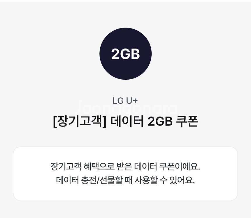 LG유플러스 데이터 2GB 쿠폰이에요. 데이터 선물하기도 해드립니다. 1기가 2천원, 2기가 4천원에 해드립니다. 관심있으신 분 연락주세요~