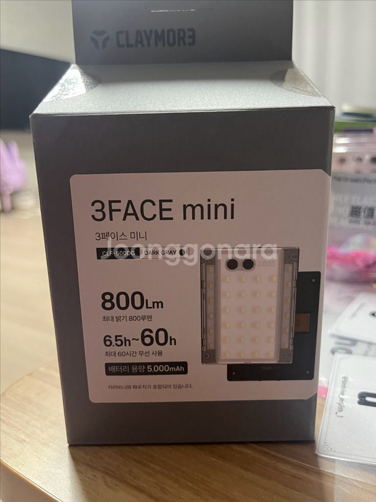 클레이모어 3페이스 미니 촬영용 LED 조명이에요. 800lm의 밝기로 사진 촬영이나 영상 제작에 좋고, 컴팩트한 디자인 입니다 크레모아 3FACE mini CLF-500DG 다크 그레이 색상입니다 - 최대 밝기 800루멘 - 최대 60시간 무선 사용 가능 - 배터리 용량 5,000mAh