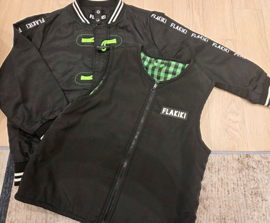 FLAKIKI 9Y사이즈 점퍼 상태 괜찮구여 베스트는 양면인데 상태좋아보여요 점퍼안에 베스트 달고 입히고 따로 빼서도 입힐수 있어서 좋아요 2만원