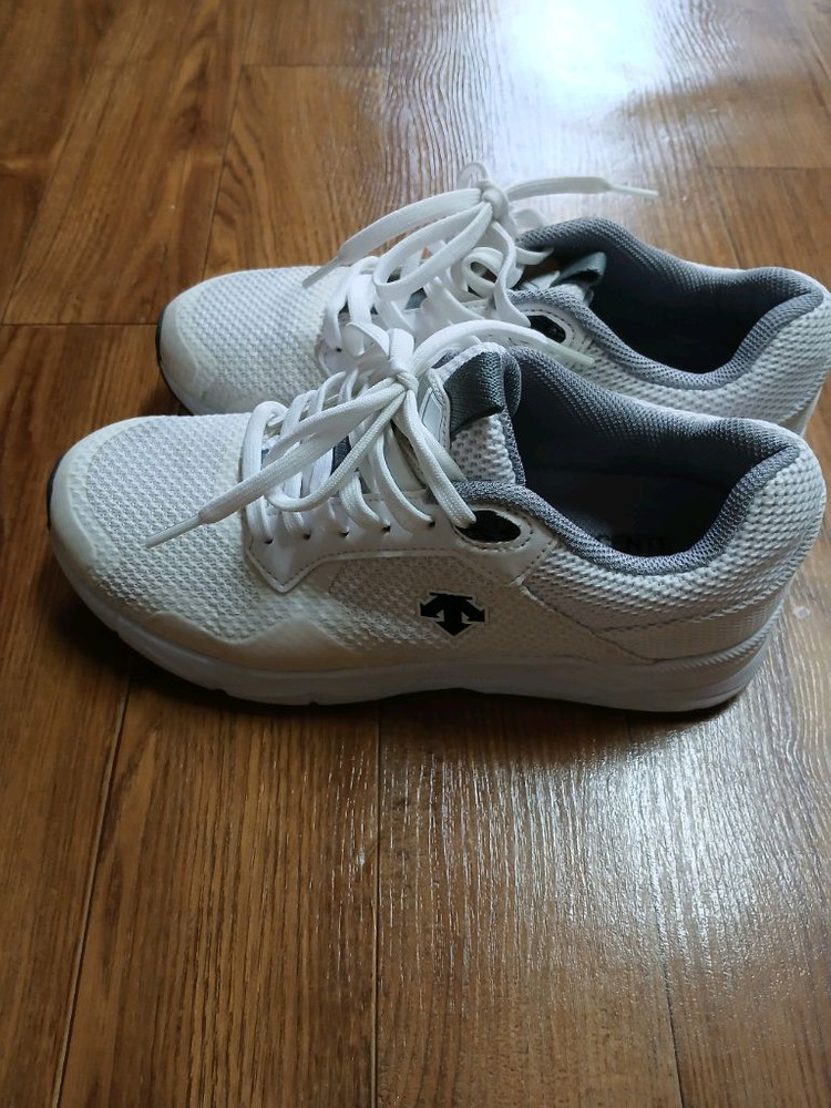 개인정보(거래정보)를 주고받는 행위는 사기에 노출될 수 있으므로 즉시 중고나라로 신고해 주세요여성용데상트운동화 240사이즈예요. 깔끔한 화이트 컬러에 그레이 포인트가 있어서 예쁘고, 전체적으로 상태 양호합니다. 에눌가격가능합니다