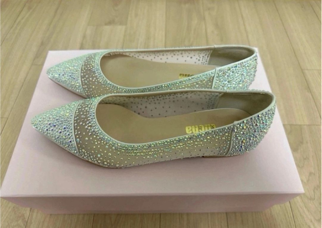 루샤 웨딩슈즈에서 구입한 구두 판매합니다. 1회 착용(3시간 정도) 거의 새상품 상태(박스있음) 굽 부분 새틴 손상 없고, 바닥면 양호합니다. 5,6번 사진 홈페이지 발췌(판매 후 삭제) 사이즈: 235(발 볼 없는 분) 굽: 1cm (택배비 포함) (환불 반품 불가) - 오색 펄 스톤 장식이 포인트✨ - 새틴 소재로 고급스러워요 - 플랫이라 편하게 신을 수 있어요