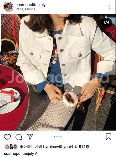 예지님 코스모폴리탄줄라이의 크림 데님 자켓입니다 골드 버튼 디테일과 스티치, 앞 포켓이 모양이 특이해 스타일리시하고, 뒤 절개가 멋스럽고 편합니다. 탄탄하면서 늘어나는 소재라 활동성도 좋아 따로 코디하기도 코트 속 레이어드하기도 좋습니다.