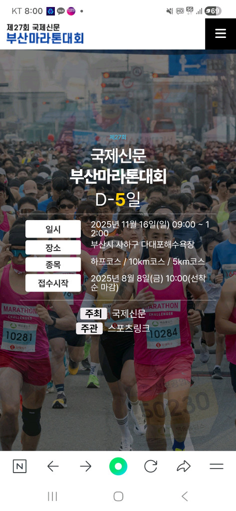 개인정보(거래정보)를 주고받는 행위는 사기에 노출될 수 있으므로 즉시 중고나라로 신고해 주세요부산마라톤 다대포 11/16일 대회 남105 배번표, 기념품 전체 양도합니다 개인 일정으로 참석이 어렵네요 직거래 부산 서대신동 가능합니다