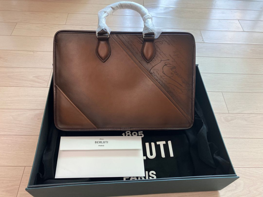 벨루티 원주르 미니 스크리토 브리프케이스 2022년 한정판 입니다. 22년도에 압구정갤러리아에서 구매했고 영수증 다 있습니다. 구입후 박스채 보관만 한 미사용 신품입니다. 한정판이라서 이 디자인은 이제 나오지 않습니다.