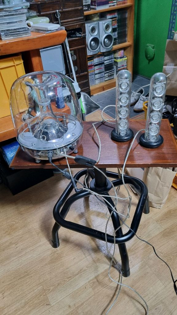 하마카돈 사운드스틱 III 라이트바입니다. 투명한 유리 디자인이 예쁘고 음악 감상이나 인테리어 조명으로 좋아요. 사용감은 있지만 작동 상태 양호합니다.사진보셨다싶이작은스피커하나푸주의로인해금이보여나깨진것이아니며사용에는지장없습니다.하치만하자인만큼저렴한가격에올립니다.음질죽입니다.사진참조하세요ㅡㅡㅡ