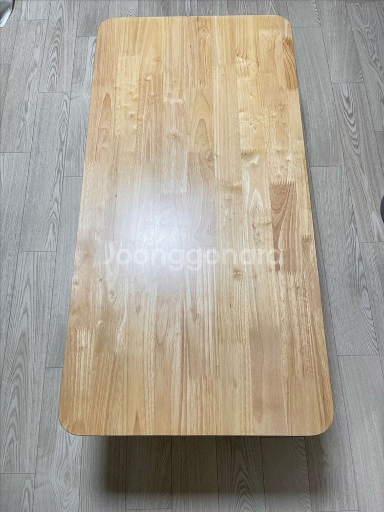 좌식 원목 테이블 판매합니다 사진처럼 상태 매우 좋습니다 사용을 몇 번 하지 않았고 하자 없고 깔끔한 상태입니다 사이즈 110x55 센치이고 원목이라 묵직한 무게감이 있습니다 (튼튼합니다) 장점은 접이식이라 다리 접어서 벽에 기대 놓거나 작은 틈 사이에 보관이 가능해 공간 활용도 좋습니다 서울역 CU 용산서계점에서 직거래 원합니다