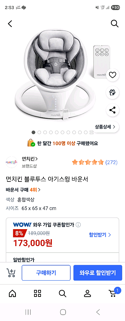 먼치킨 블루투스 아기 바운서예요. 블루투스 연결 가능하고 상태 양호합니다. 아기가 편안하게 쉴 수 있는 인기 제품이에요!