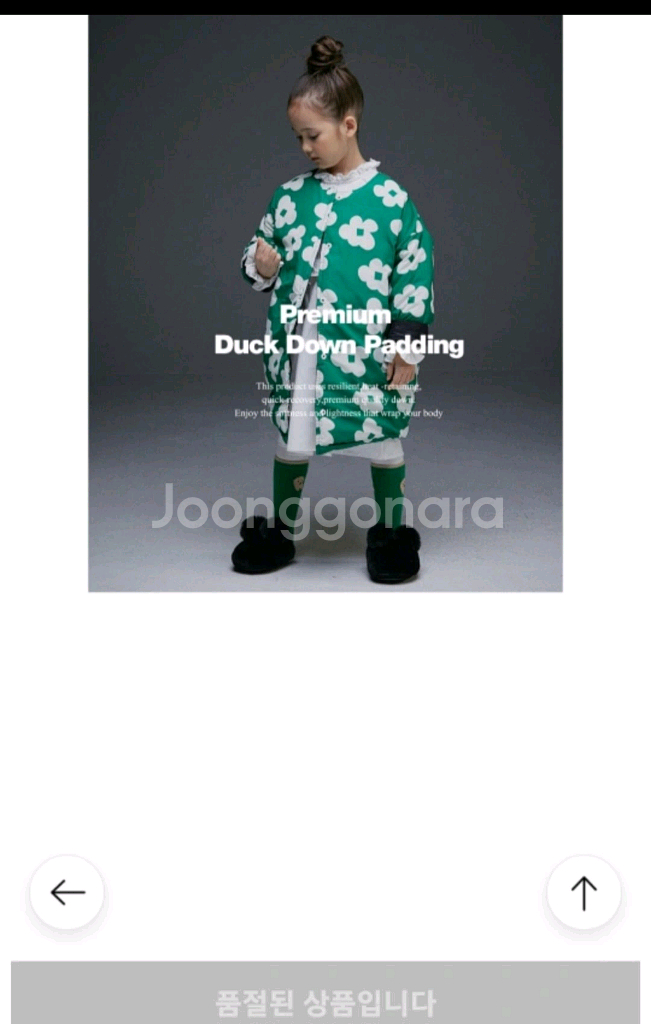 로아앤제인 양면 덕다운 패딩이에요 120사이즈 그린 플라워 패턴과 다크그린 두 가지 스타일로 착용 가능해서 너무좋고^^ 따뜻하면서도 스타일리시해서 진짜 좋아용~ 진짜 정말 가볍고 핏이살아서 딱 이쁘고 좋습니다~ 후회없는 딱 요즘 패딩 두껍지않고 정말 이뻐요^^ 세탁안된상태라 3만원 깔끔 착한가격올려요 바로입히시기 문제없슴~ 로아앤제인 두툼 스커트 완벽 새제품^^ 깔끔 만원에~*