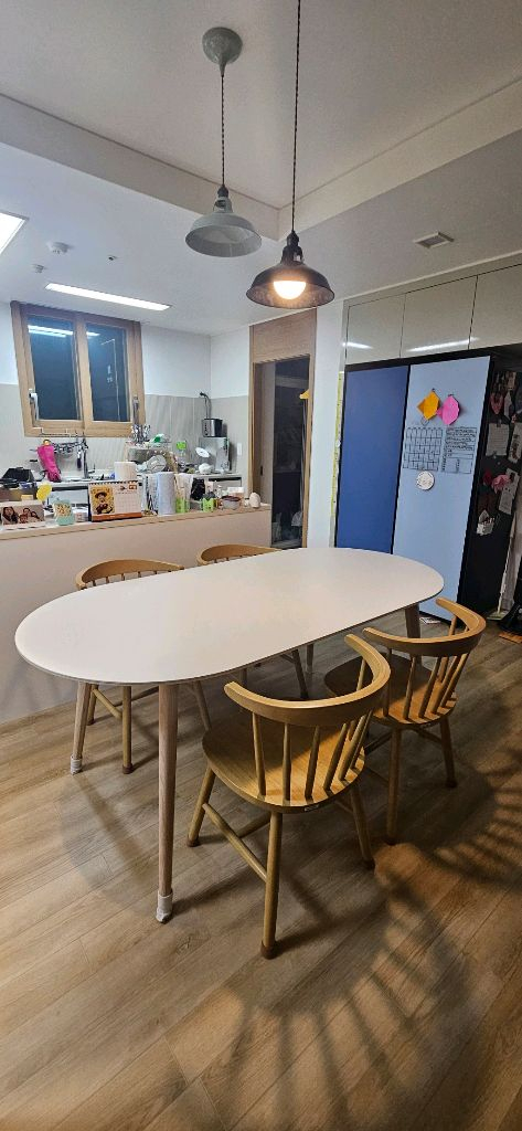 리바트 레도바 6인 라운드 세라믹 식탁 과 리바트 뉴윈저 로우백 원목 식탁의자 입니다 21년도 구매했고 22년도에 세라믹상판 새걸로 교체받았어요 식탁 다리는 애쉬 원목입니다 원목의자는 재질 특성상 곳곳에 작은 찍힘이 있지만 아주 큰 상처는 없어요 중고이니 예민하시면 지나가주세요 직접 가져가셔야합니다