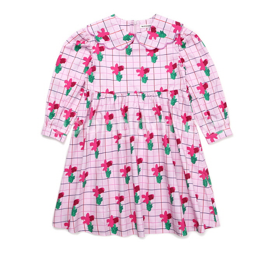 테일스쿱 핑크 꽃무늬 원피스입니다. 카라모양도 예쁘고 전체적으로 체크 패턴이 은은하게 들어가 있어 더 고급스러워요! 택달린 새제품이고, 130 사이즈입니다.