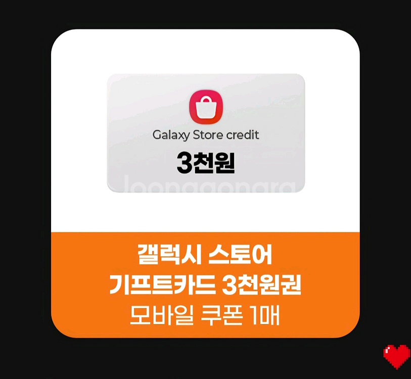 갤럭시스토어 3천원 기프트카드 (11/28) 영문숫자조합 입니다 (완료) 사용법 아시는 분만 구매하세요 [사용방법] *본 기프트카드는 게임 아이템이나 유료앱, 테마, 폰트 등 유료 콘텐츠 결제 시사용 가능합니다. (일부 미지원 서비스는 사용블가) ⁃구매 페이지>결제창 > 포인트 또는 쿠폰 사용 > 기프트카드 선택하여 사용 가능합니다. -타 포인트 또는 쿠폰과의 중복 사용은 불가하며, 삼성전자 멤버십 및 리워즈 적립에서 제외됩니다.