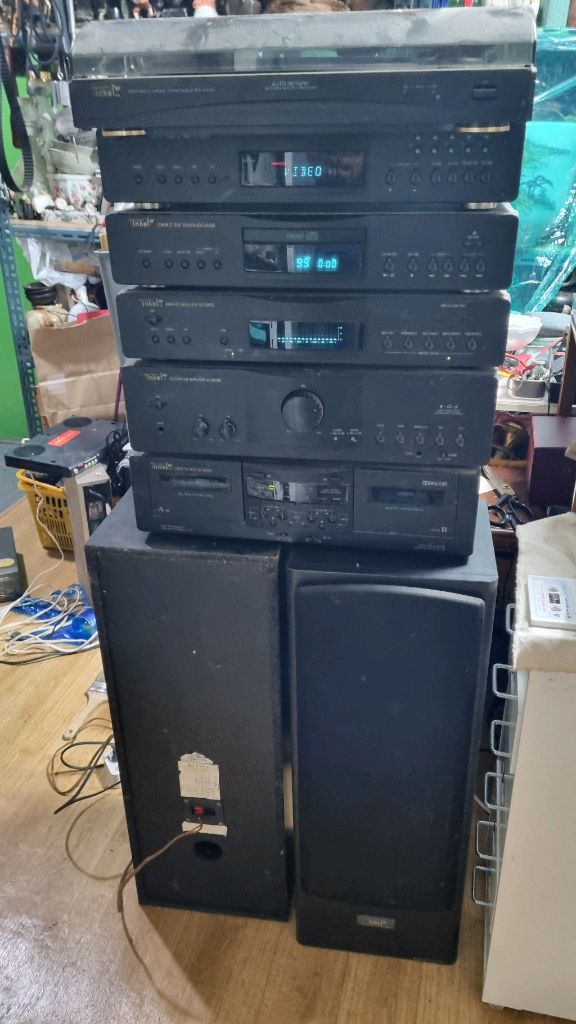 인켈 브랜드의 오디오 장비들이에요. 앰프, CD플레이어, 카세트덱 등이 포함된 완전한 시스템으로 상태는 먼지가있는외최상급입니다.깨끗이청소후보내드립니다.동영상필요시보내드립니다.1스트레오레코드플레어PS3200 2.튜너TX3200Q 3'디스커플레이어CDG3200Q 4이퀄라이저EQ3200Q 5.인티그레이티드앰프AX3200Q 6더블카세트테이크DD3200Q 7인켈BASS REFLEX SYSTEM스피커세트ISP3000 턴테이블카세트라듸오모두정상작동.디스커플레어는조작미숙인지창이열리지아않습니다.벨트가늘어지거나조작할줄몰라그를수있습리다.큰문제는아닙니다.개인집수집당시모두작동보증집에와서테스트완료이상없음을확인후올린겁니다.음질좋습니다.사진참조하세요ㅡㅡㅡ
