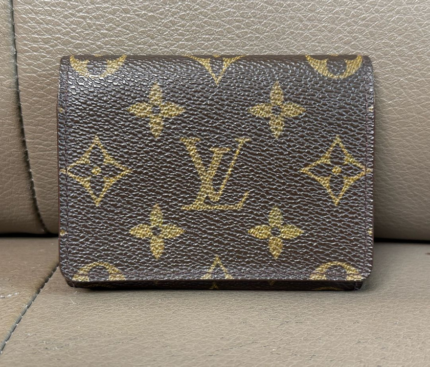 루이비통 엔벨로프 비지트 카드지갑입니다. 컴팩트한 사이즈로 들고다니기 너무 유용해서 잘 쓰고 다녔어요. 카드나 현금 명함등 수납 용이해요. 이제는 잘 사용하지 않아 보내요. 상태는 사진과같이 전체적으로 외형 컨디션은 좋은 편이지만 내부 안보이는 슬롯 윗쪽 부분 사용감 있지만 눈에 안띄어요. 지갑 단품이고 택배거래시 4천원 추가해주심 되요.