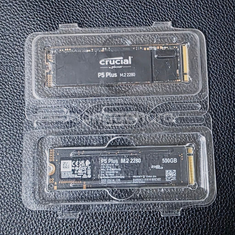 크루셜 P5 Plus M.2 NVMe SSD 500GB입니다. 2개 팝니다. 투명 케이스에 깔끔하게 보관되어 있고 상태 양호해 보여요. 고성능 게이밍이나 작업용으로 최적입니다.