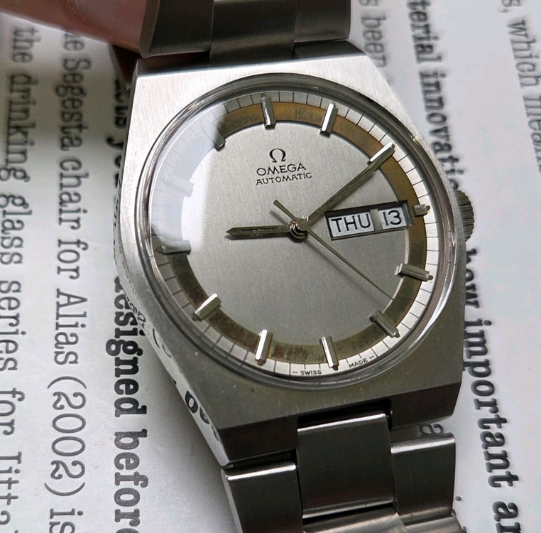 ⚠️아래 내용 꼭 읽고 문의주세요⚠️ !! 교환, 업자 절대 사절. 상식밖 거래, 비매너, 사적 요청, 의미없는 대화 X !! 아무런 대화없이 결제하지 마시고 대화 먼저 부탁드리며, 실시간 재고 확인 및 충분한 안내 후 거래 진행 !! 제 사진을 도용해 터무니없는 가격에 올려놓는 도용 사기글들에 주의하세요 !! 구매 전 상점 정책 필독 !! 빈티지 시계 및 기계식 시계에 대한 이해도가 있는분만 연락주세요 _________________________________ 레어] 빈티지 오메가 제네브 데이데이트 희귀 동심원 다이얼 통줄 브레이슬릿 ver. 빈티지 오메가 제네브 라인 중, 젠타 스타일의 각진 러그와 일체형 통줄 브레이슬릿의 조화가 아주 매력적인 시계입니다. 특히 이 모델은 동일 개체 찾아보기 힘든 동심원 희귀 다이얼이 들어가 더욱 소장 가치가 있습니다. 현재 전체 오리지널 상태 유지중이며, 유리정중앙 오메가 로고 각인까지 살아있을정도로 보존 상태가 좋네요. 아울러 지금은 만나볼수없게된 제네브 라인이라 더욱 애착이 가기도 합니다. 양도전 큰 비용 들여서 전체 최고급 폴리싱, 글래스 폴리싱, 무브먼트 오버홀 및 점검까지 모두 완료해 바로 착용하시면 됩니다. 잘 나오지않는 희귀 모델이라 가급적 빈티지 시계 수집하시는 매니아분이 가져가셨으면 하는 바람이 있네요. 테레비, 고구마 등보다 귀하고 좋은 시계지만, 좋은 주인 찾기위해 더 저렴한 가격에 올립니다. 실착해보시고 결정하세요. 직거래 군자역입니다.