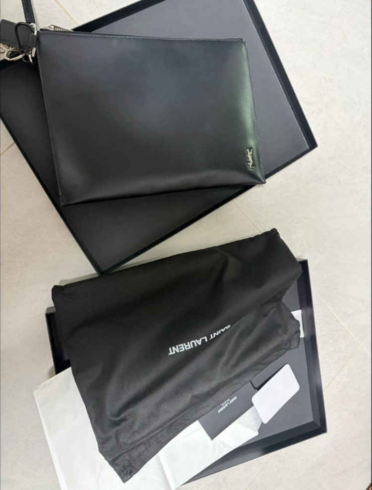 입생로랑 타이니 모노그램 클러치 은장모델입니다 6회 들고 외출했으며, 상태 최상입니다 더스트백 박스 보증서 포합입니다