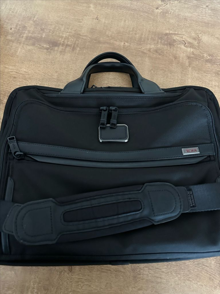 투미 브랜드의 고급 비즈니스 브리프케이스입니다. 깔끔한 블랙 컬러에 여러 수납공간과 튼튼한 소재로 구성되어 있어요. 사용감은 있지만 전체적으로 양호한 상태입니다. 크기는40x30x12