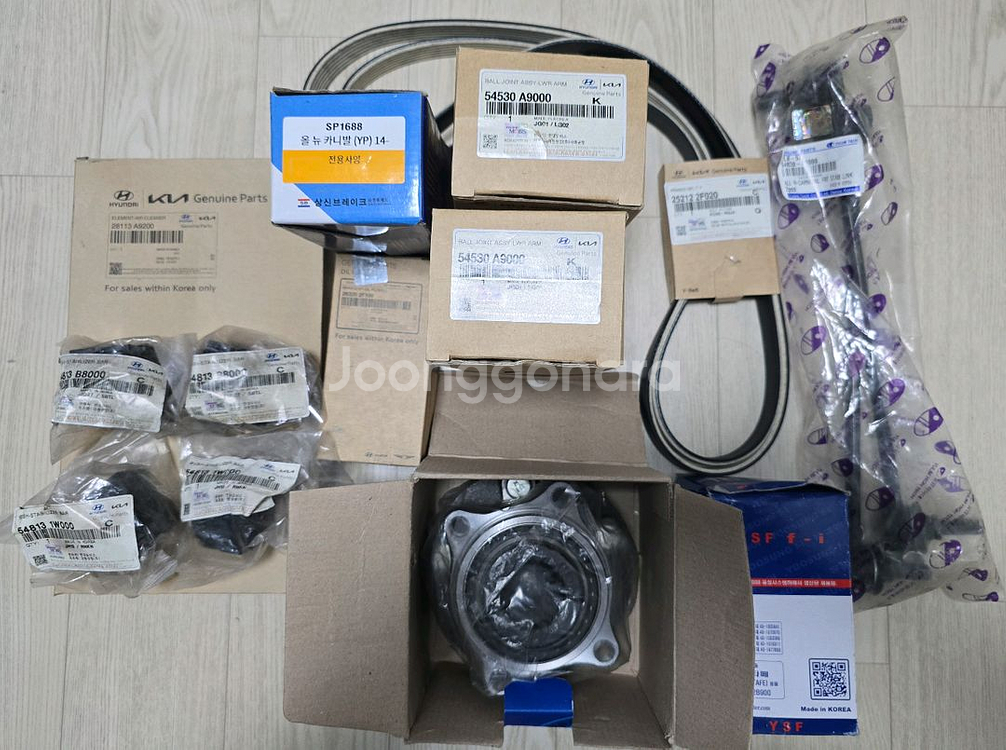 차량판매후 가지고 있던 을 판매합니다. 1순정 V벨트 1개 2순정 로우암 볼 조인트 .2개 3순정 오일필터 1개 4 순정 에어필터 1개 5순정 스테이빌라이져 부쉬 세트 4개 6 일진 전 허브베어링 1개 7연료필터 1개 8스테빌러이져 링크 2개 9삼신 브레이크 패드 총구 매금액 24만원 정도 판매금액 18만 남양주시 장현천로 .