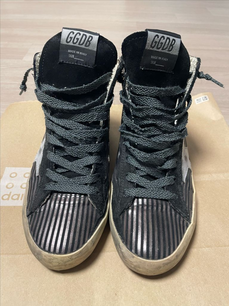 골든구스 하이탑 36사이즈입니다. 100% 정품입니다. 상태 좋습니다. 지금도 이 컬러가 나오는지는 모르겠네요. 상자는 이사오면서 버려서 없습니다.