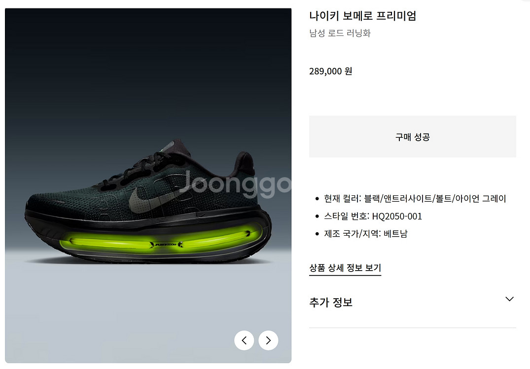 개인정보(거래정보)를 주고받는 행위는 사기에 노출될 수 있으므로 즉시 중고나라로 신고해 주세요나이키 보메로 프리미엄 블랙 (260사이즈) 공홈에서 구매 성공했는데 지인에게 같은제품을 선물받아 판매합니다. 공홈에서 배송오는 포장 그대로 뜯지않고 바로 보내드립니다. 직거래 또는 택배거래입니다. 대전입니다.