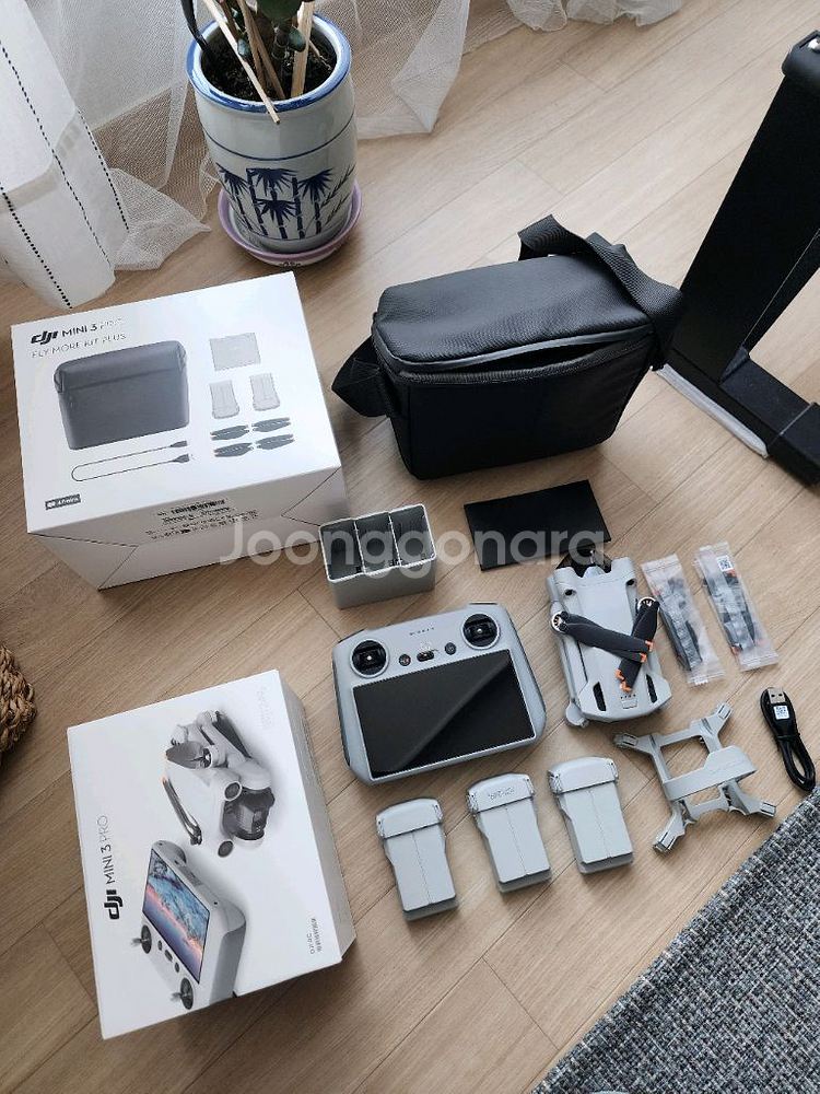 신품 구매했고요. 2~3회 정도 날린 기억이 있네요. 조종에 소질이 없어서 흥미가 없네요 ㅠ 보관만 하는거 같아서 판매합니다. 기체 떨어뜨린적이 없어서 새것 컨디션입니다. 배터리 3개고요. 추가 구매한 옵션으로는 1. 컨트롤러 강화 유리 2. 드론 랜딩기어 사진보시는바와 같이 누락 일체없는 전체구성품 입니다.