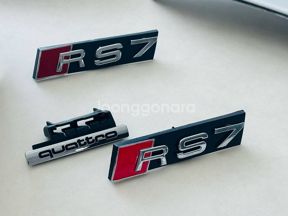 아우디 RS7용 튜닝 부품들이에요. 아우디 RS7 튜닝 부품 세트(사이드미러 커버) 망치기어봉, RS7 로고, 퀄트로 로고가 포함되어 있고 상태는 양호해 보입니다. 튜닝을 원하시는 분께 추천드려요!